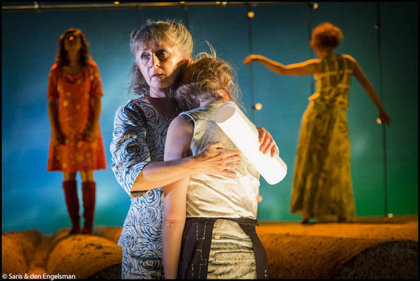 Theaterkrant 1 november 2015: “…Het toneelbeeld bestaat uit niets meer dan een grote draaischijf waarop een perspectivisch vertekend en daarom immens lijkend akkerland te zien is. Ruige aarde waarin diepe voren getrokken zijn. Symbool voor de talloze personages die allemaal uit de klei getrokken zijn en in wie het leven diepe groeven achtergelaten heeft. Daarboven maken de planeten hun trage omwentelingen. Gigantische