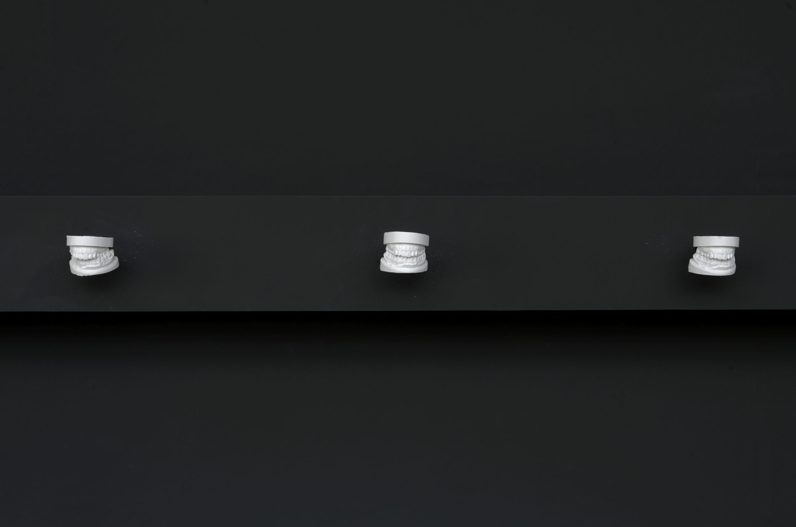 ’s Nachts worden de messen geslepen is een kinetisch werk dat onderzoekt hoe emoties, spanningen of verlangens hun weg naar buiten vinden. Een rij van 7 gebitten knarst met elk een eigen snelheid en kracht, waardoor gruis uit de gebitten naar beneden dwarrelt. Gedurende de tentoonstelling vernietigt het werk zichzelf.