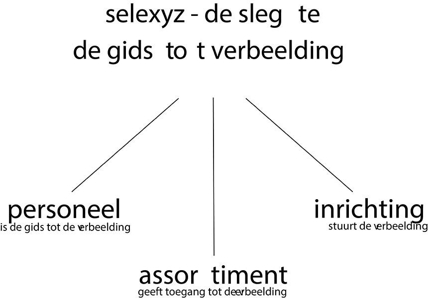 In opdracht van de nieuwe eigenaar van Selexyz/De Slegte heb ik mijn visie gegeven over de boekwinkel van de toekomst. Hiervoor bedacht ik het conceptuele uitgangspunt: De Gids tot verbeelding; De boekhandel is als een gids die de klanten helpt de juiste boeken te vinden.