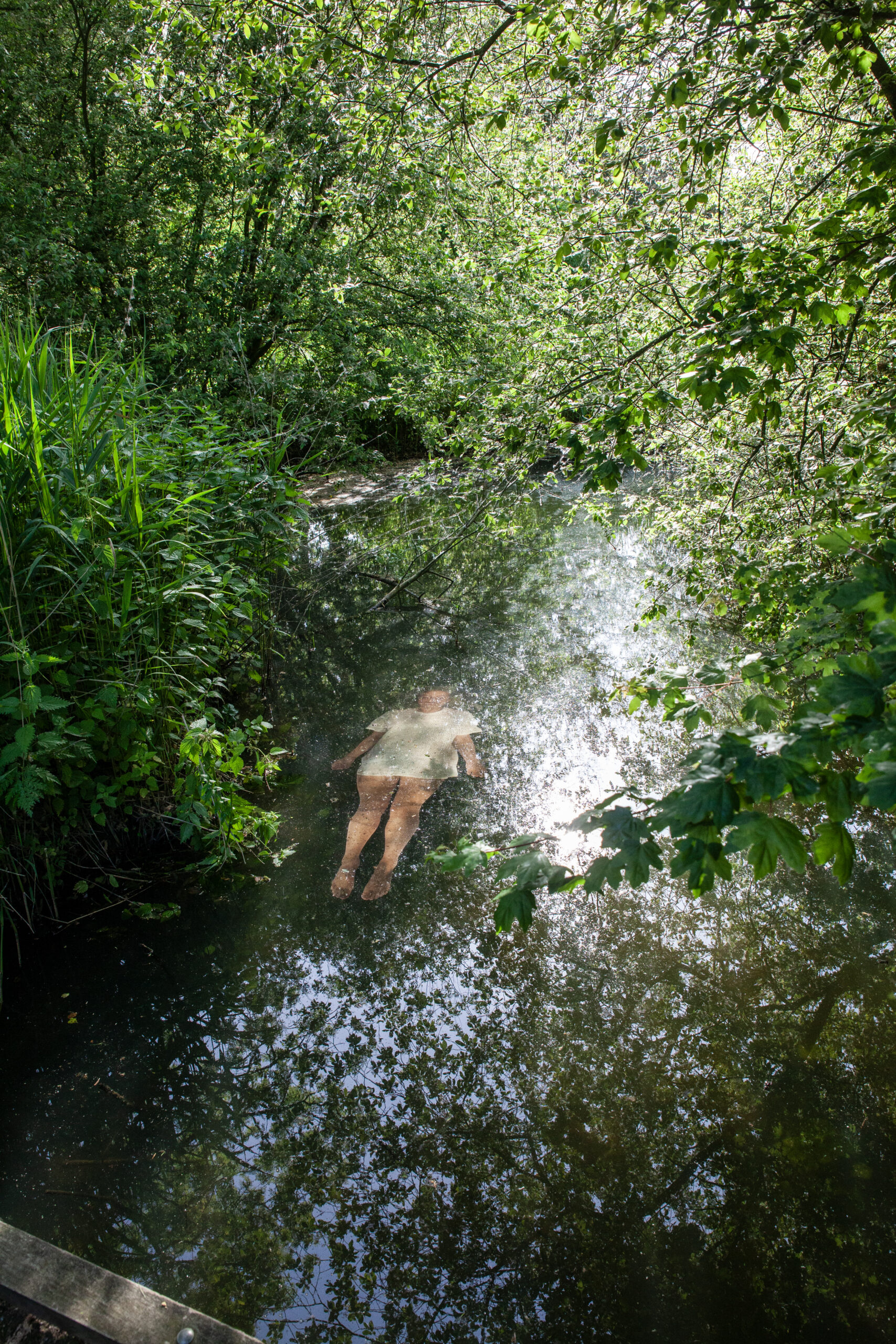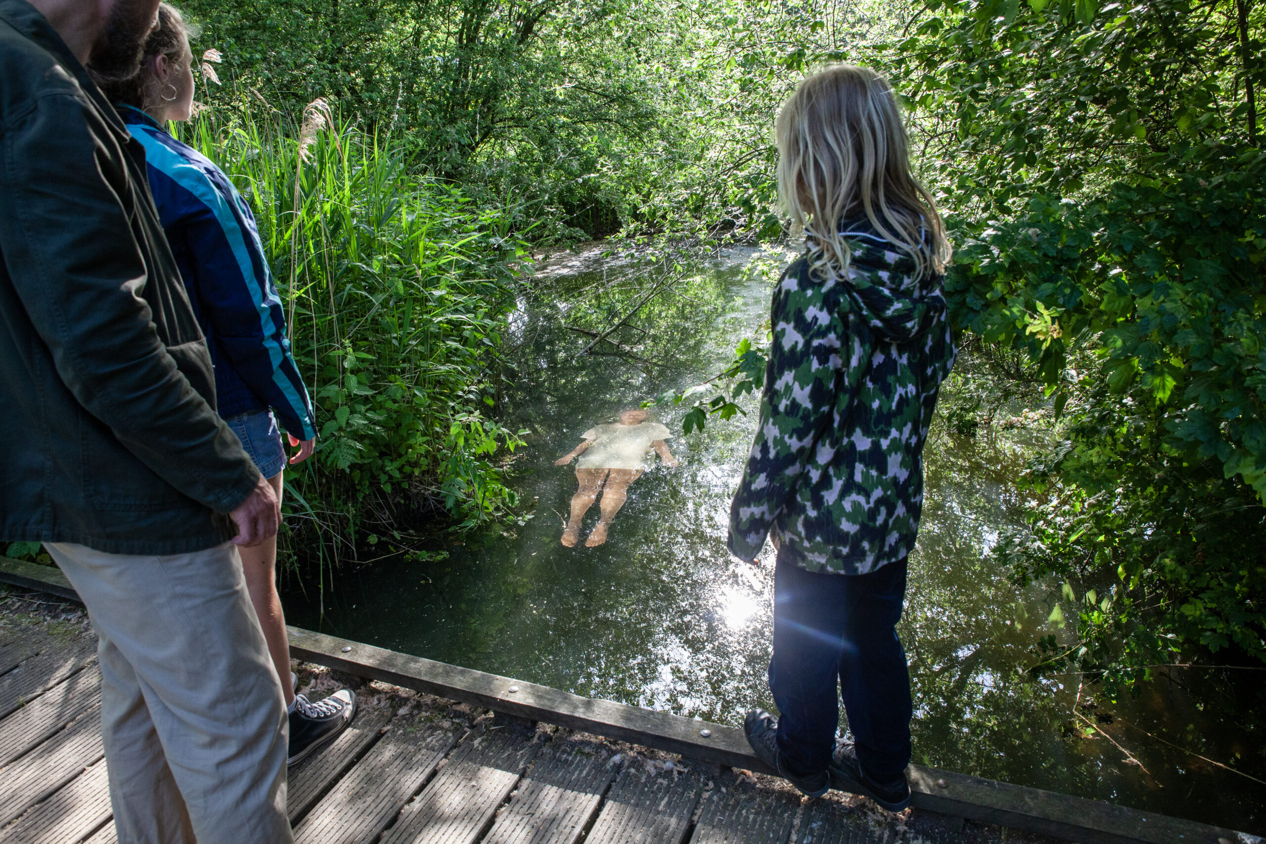 In the photo installation ‘The Waiting’ someone floats just below the surface of the water, larger than life size. Is it a girl or is it a woman? Is she alive? Is she sleeping? Did she drown? Or does she wait for life to begin? The image refers to Ophelia from Shakespeare’s Hamlet and painted by John Everett Millais in 1852.